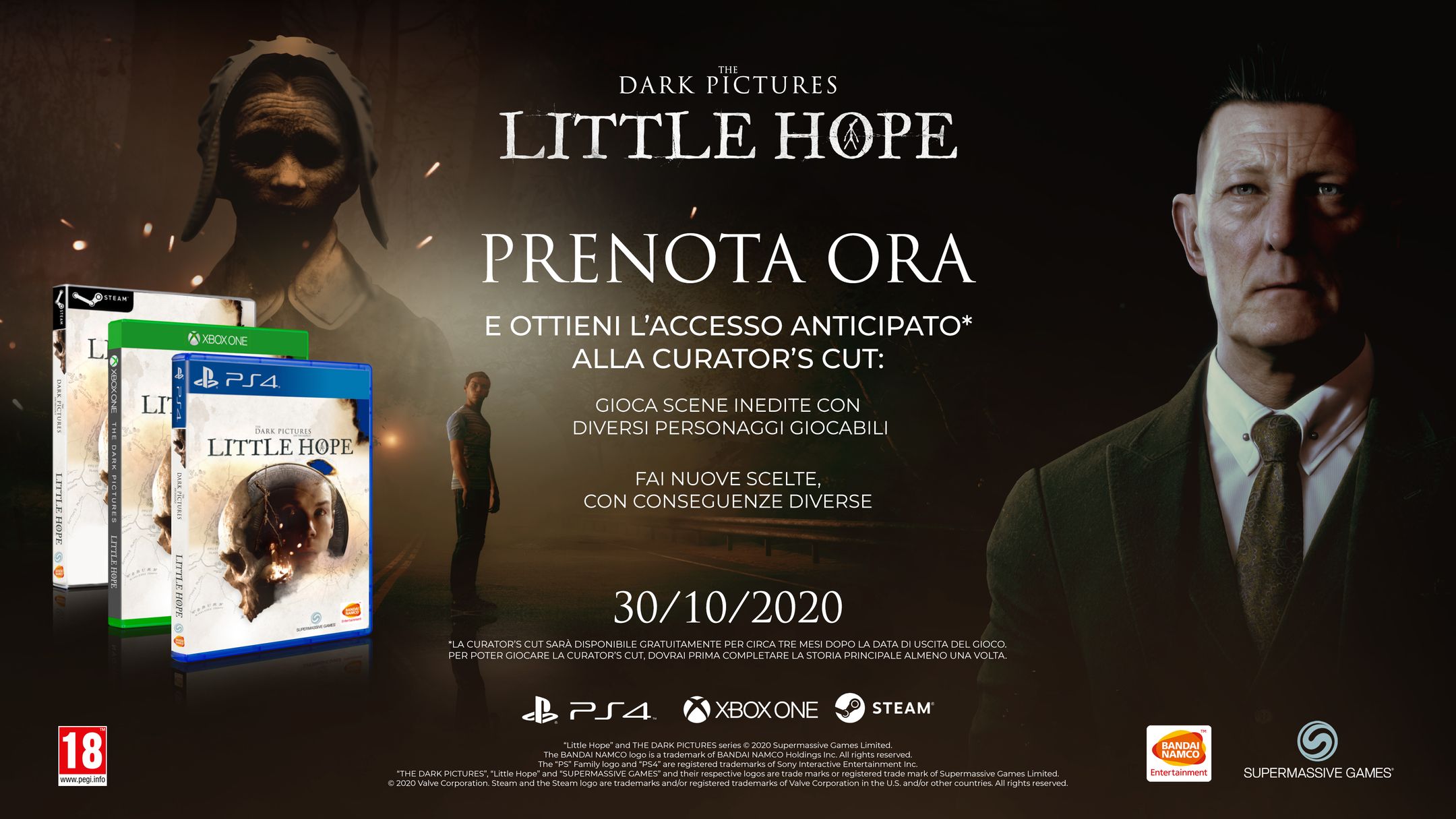 The Dark Pictures Anthology: Little Hope sarà disponibile nelle versioni Standard, Limited e Collector’s Edition con alcuni bonus per la prenotazione. Il gioco è attualmente prenotabile sugli store digitali e presso i rivenditori che partecipano all’iniziativa.
